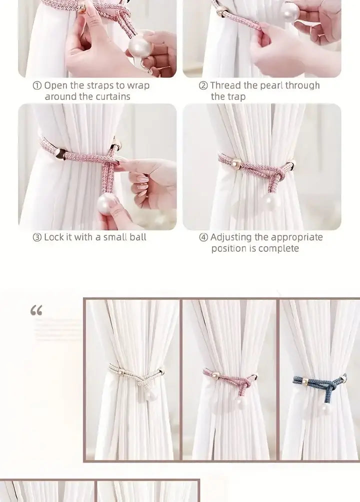2PCS French Curtain Tiebacks – Faux Pearl Decorative Holdbacks
