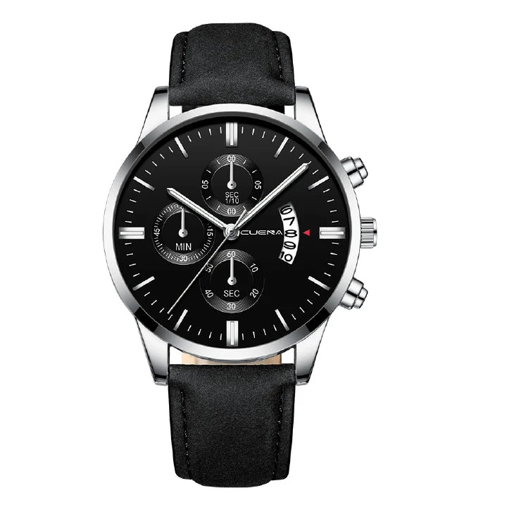 CUENA Men’s Quartz Watch – Leather Strap, Waterproof (Business Style)