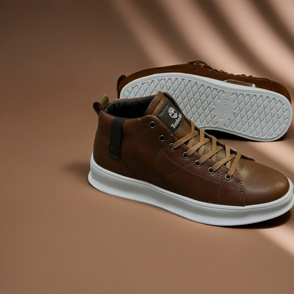These men’s brown mid-top sneakers are designed for everyday comfort and casual style. Featuring a smooth leather-look upper with durable stitching, they offer a clean and modern finish. The lace-up closure provides a secure fit, while the padded collar enhances ankle comfort. A thick white rubber sole delivers reliable grip and cushioning, making these sneakers ideal for daily wear, casual outings, and smart-casual looks.
