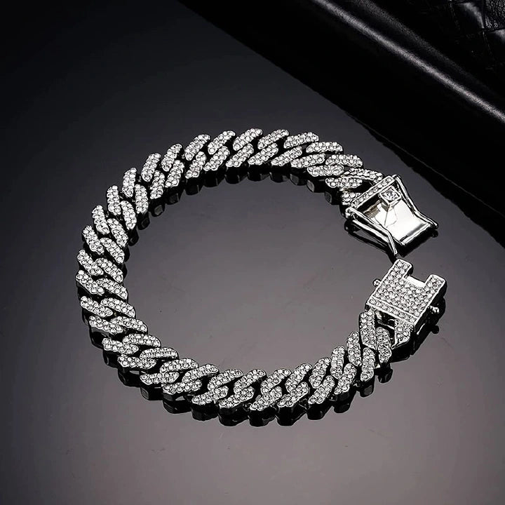 Iced Miami Cuban link anklet/bracelet for men or women. Bold streetwear accessory for daily looks. Stock: 10 units.